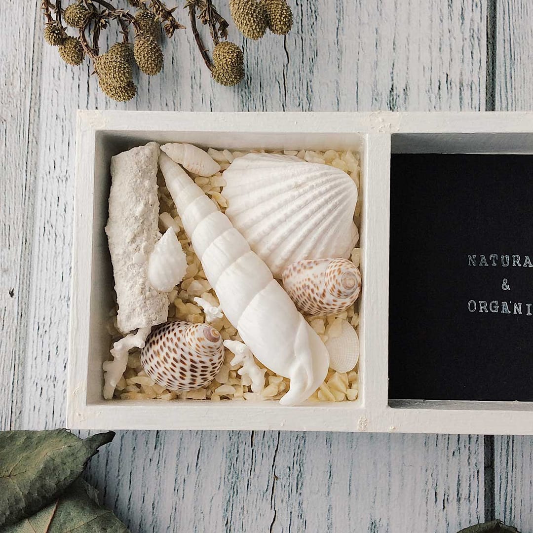 中に貝殻とか木の実とか入れてみました。