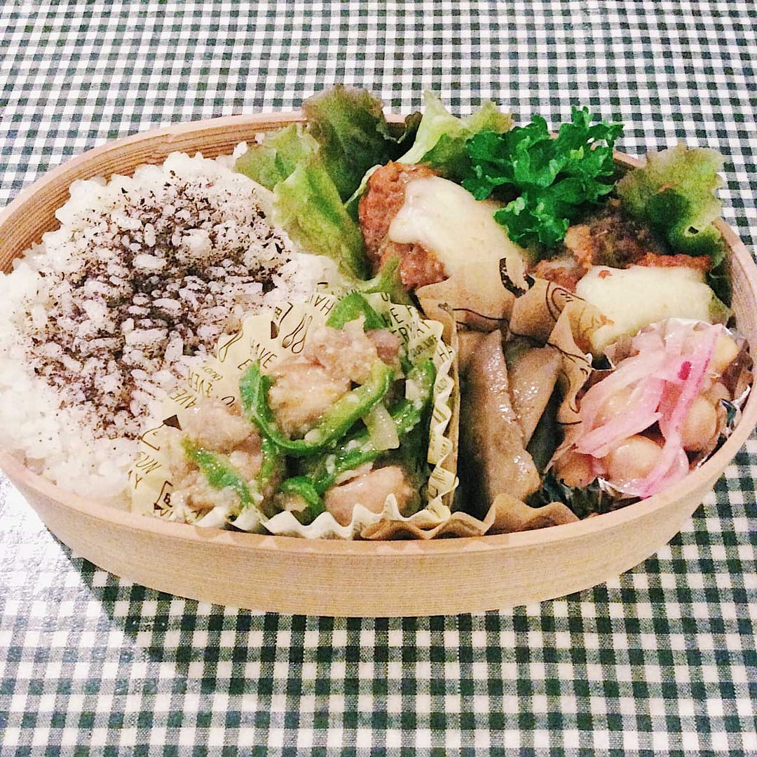お弁当箱にシミつけたくなくて初日はこんな感じになりました。