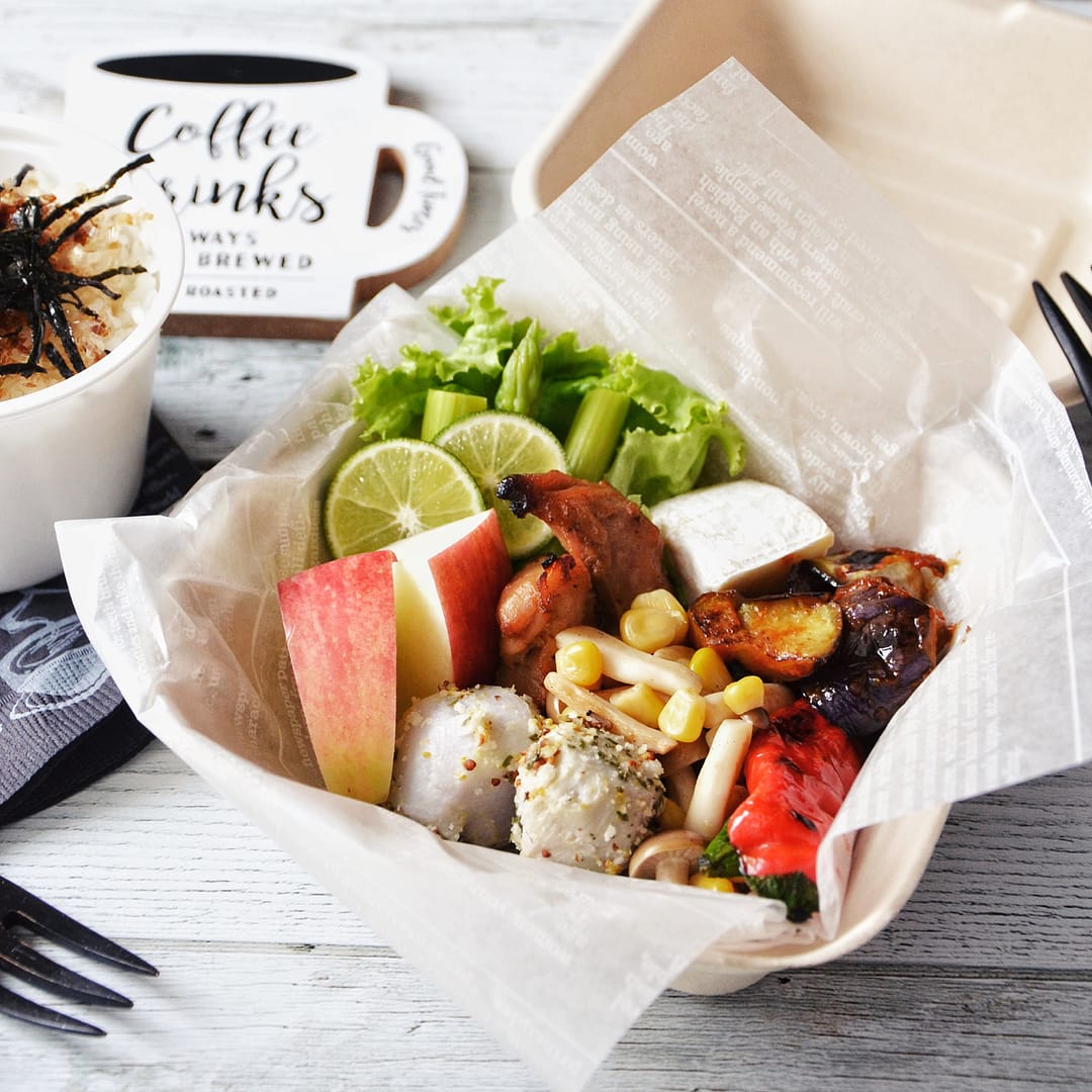 しめじとコーンのバター焼き、ナスのトマト煮込み、