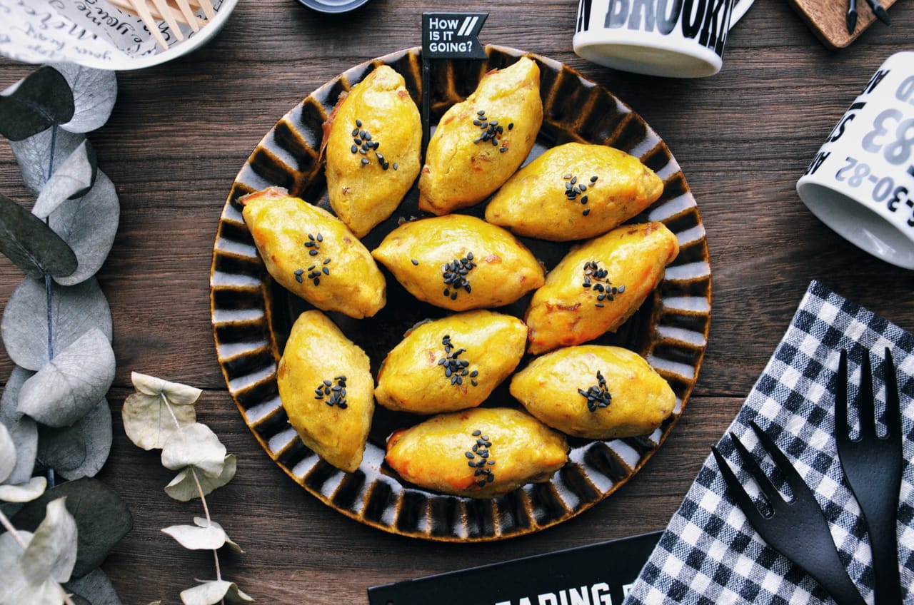 1.さつまいもは蒸すか茹でるかして、軽く潰しておきます。