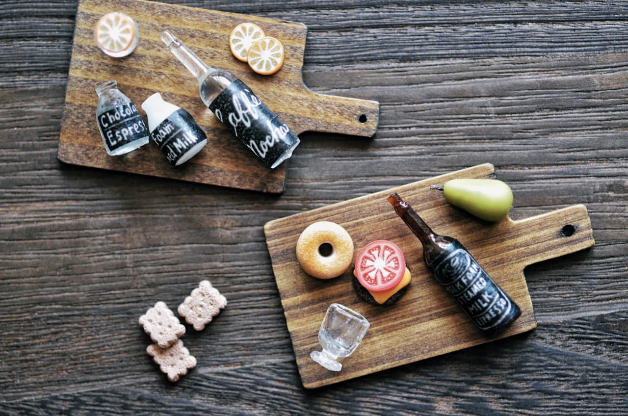 色々並べてみました。オレンジのサイズが直径0.6cm、ベーグルが直径1cmぐらいです。